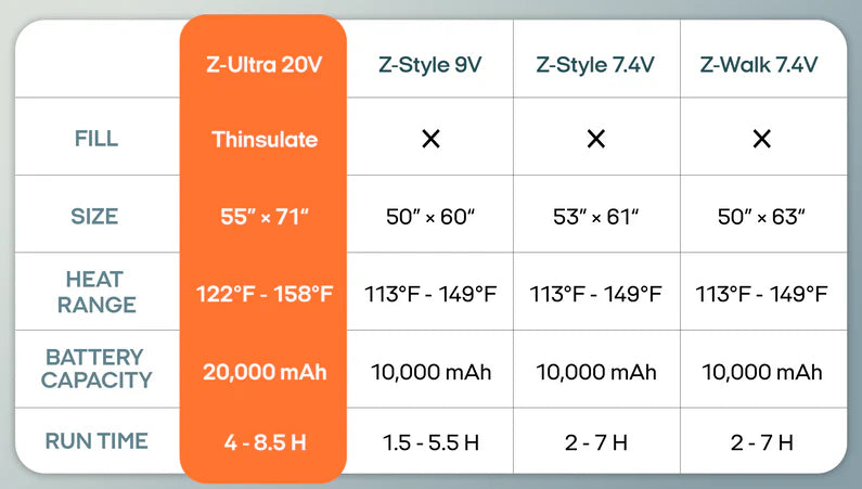 Rechargeable Battery Heated Blanket- Z-Walk 7.4V